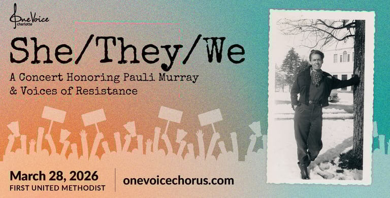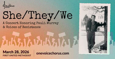 Trailblazer. Poet. Priest. Activist. Pauli Murray defied categories and dared to live at the intersection of race, gender, and justice. In She/They/We, One Voice Chorus honors Murray’s legacy through Sincerely Yours… Pauli Murray, a powerful new work by Steve Milloy and Kim Hines illuminating Murray’s life in her own words. Accompanying this centerpiece are choral works that celebrate the voices who’ve challenged injustice, reshaped history, and dared to envision a freer future.